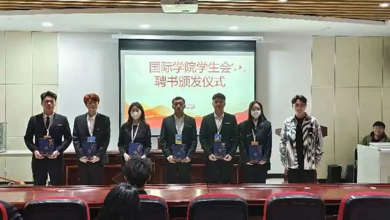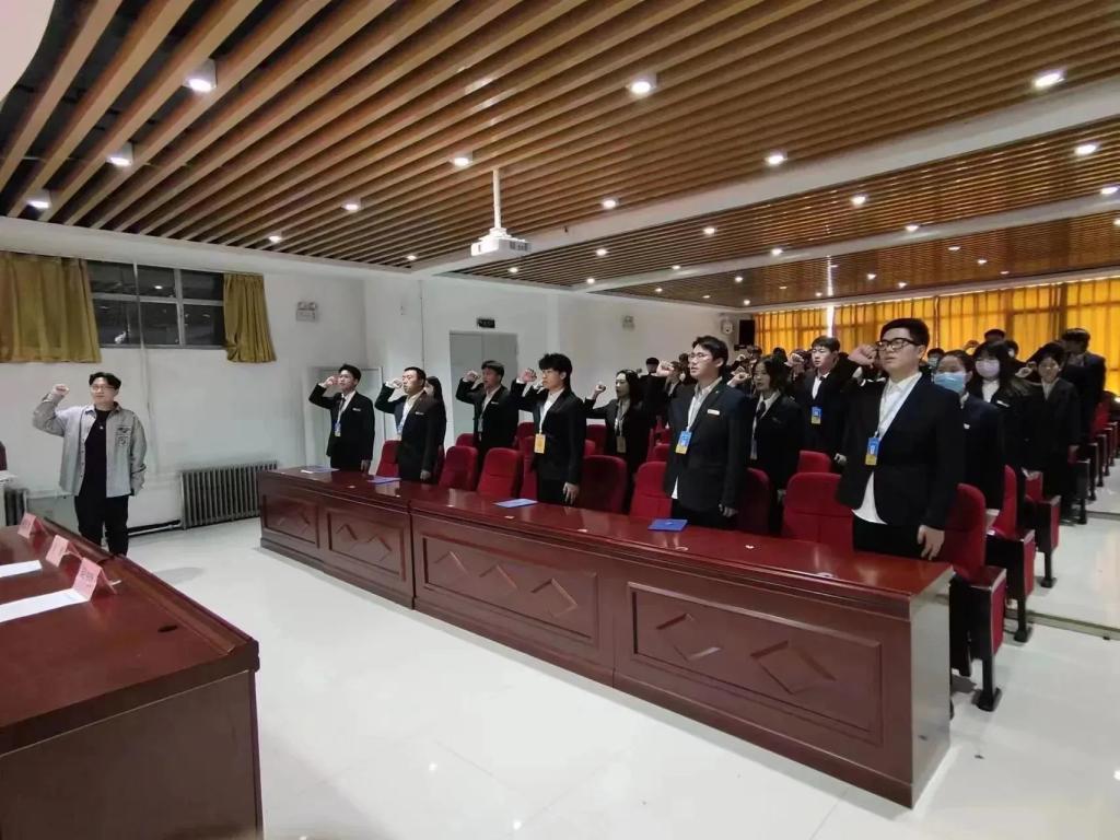 接着,进行聘书颁发仪式。不仅是对部长身份和工作的认可,更是对继续保持积极态度对待工作的鼓励。最后,刘博等三人带领大家进行宣誓,学生代表大会在激昂的宣誓声中正式结束。