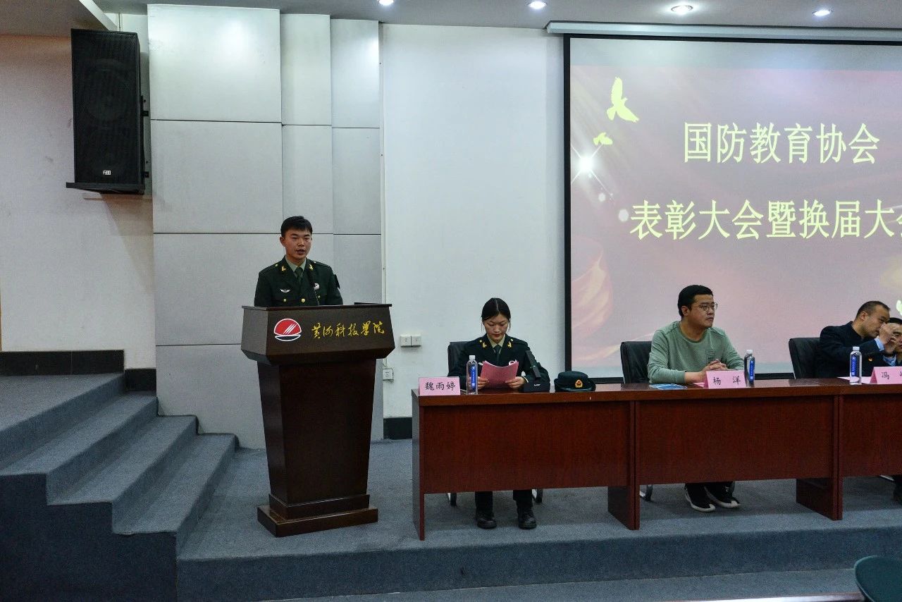 4月6日,我校国防教育协会在信息大楼第一报告厅举行第二届换届暨表彰大会。校武装部副部长冯峰、马克思主义学院分党委副书记韩树栋、武装部办公室主任栗金峰、协会指导老师杨洋、国旗护卫队指导老师周亚克,国防教育协会2022届、2023届成员出席本次会议,青年突击队和学生代表等列席。