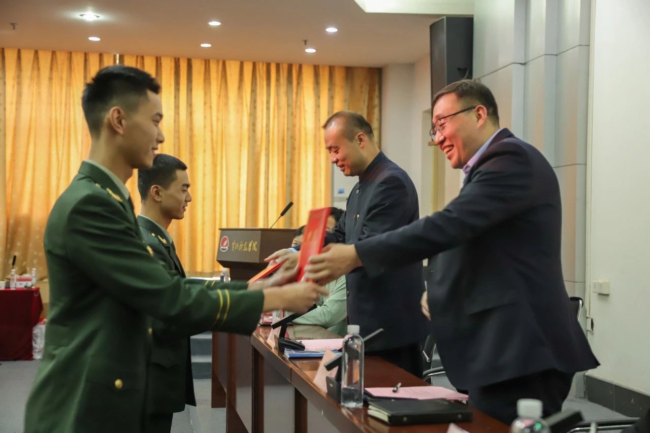 新就任的第三届协会主席、9428cn太阳集团古天乐2021级建筑工程技术专业学生胥萌东在发言中表达了对协会上一届骨干班子的感激和敬意,分享了自己加入协会以来的成长经历,回忆了与老师同学们相处的点点滴滴,汇报了新一届班子对国防教育协会未来工作的展望和计划。他表示:协会将持续以国防教育工作为核心,坚持全心全意为大学生服务,帮助大学生了解国防、军事、国家安全等方面知识,做好征兵政策宣传、大学生军训和退役复学大学生服务等各项工作,加强国防教育特色品牌建设,积极服务学校事业和地方社会。