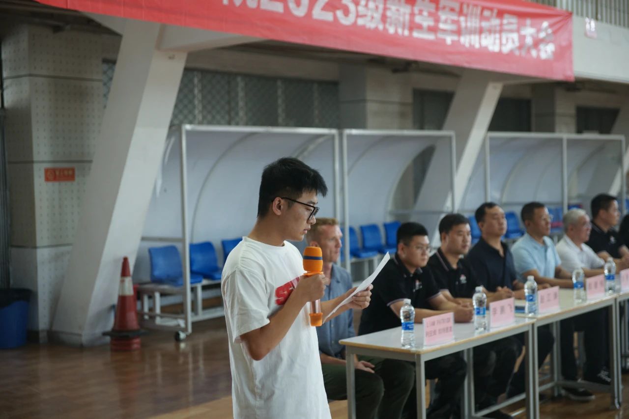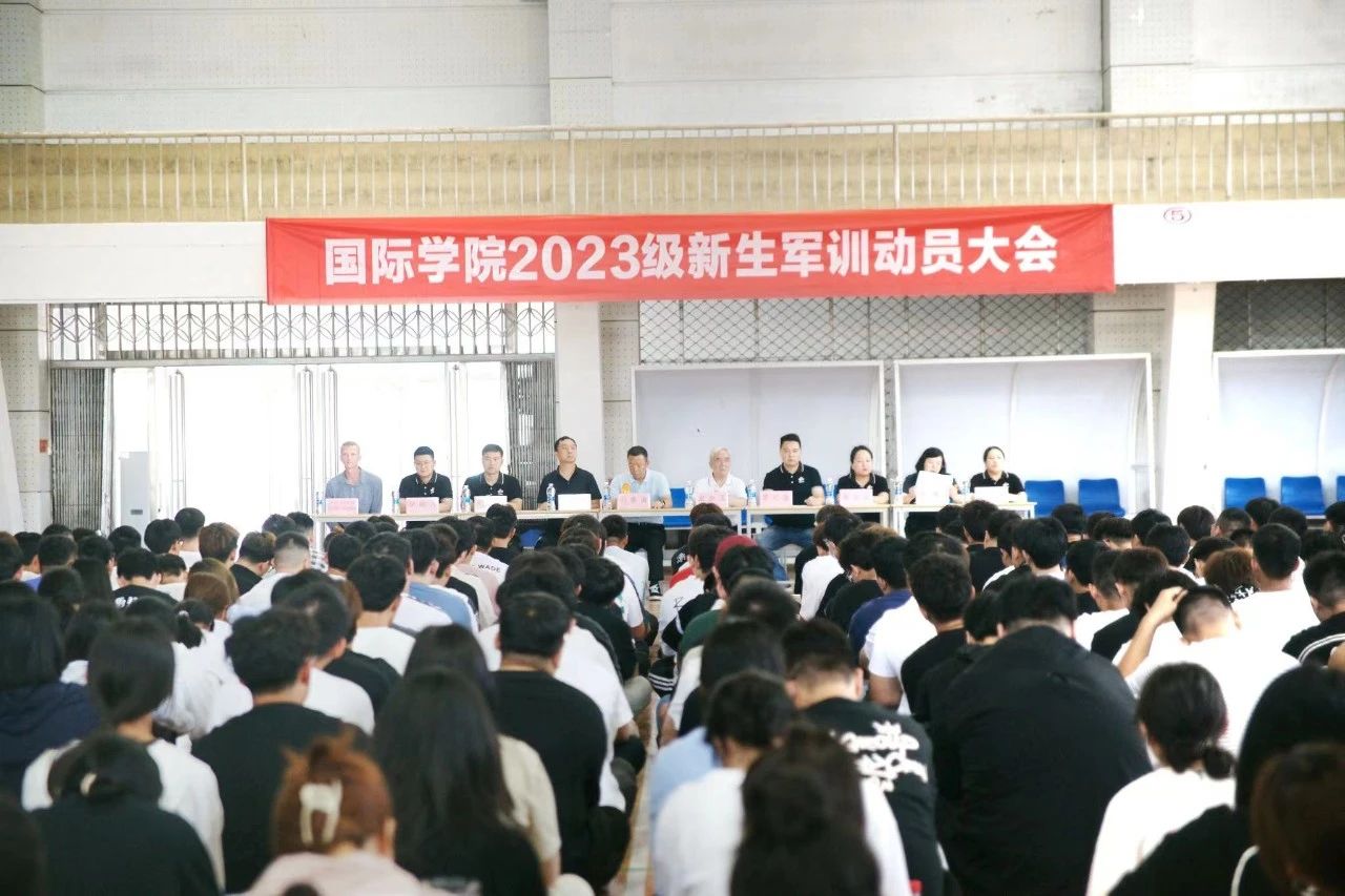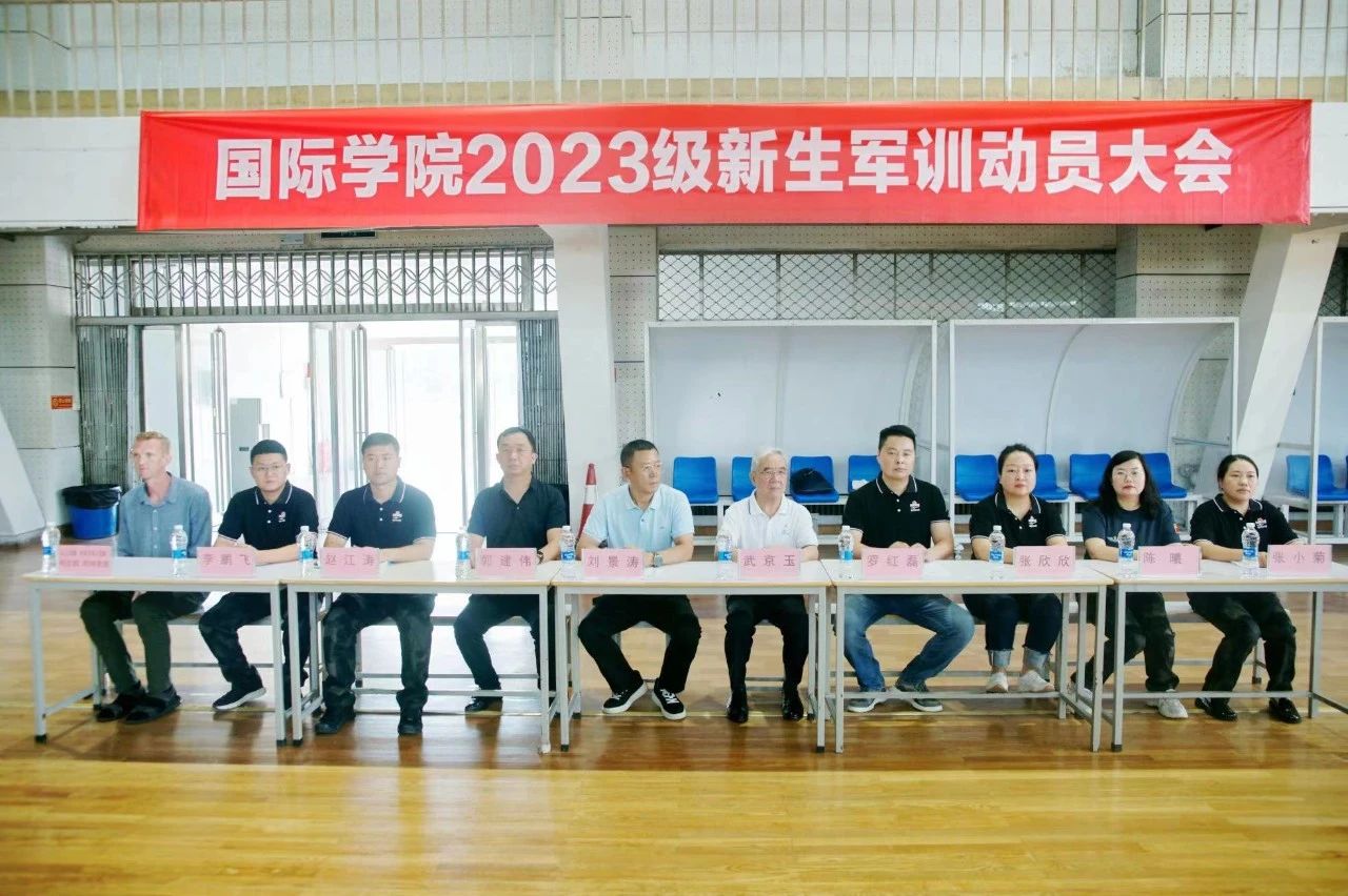 8月30日,9428cn太阳集团古天乐在老体育馆召开2023级新生军训动员大会,9428cn太阳集团古天乐分党委书记刘景涛、常务副院长武京玉、副书记郭建伟等一行领导出席军训动员大会,会议由行政办主任罗红磊主持。
