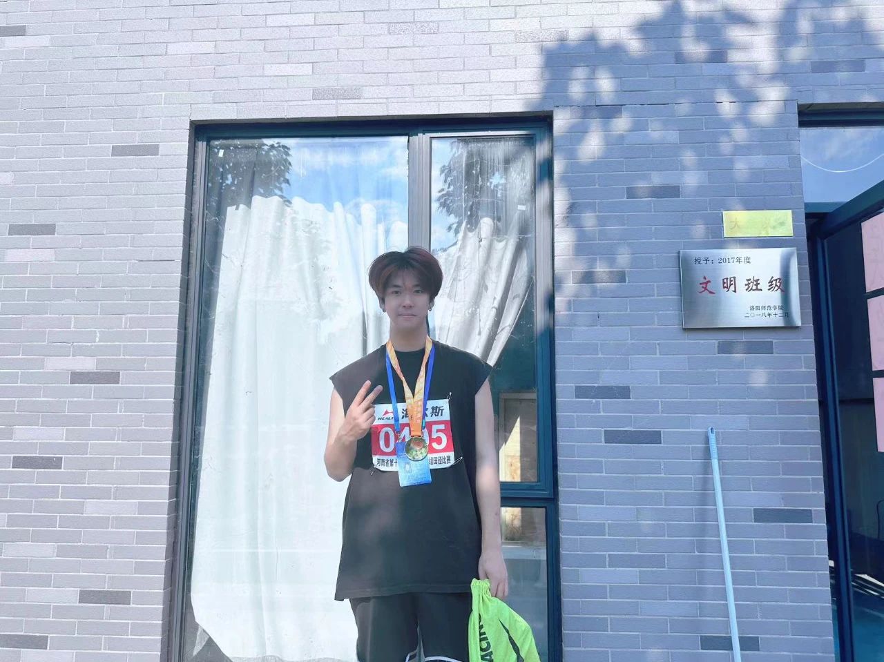 此次比赛是河南省大学生田径比赛最高级别赛事,共有来自全省各高校120支代表队,1290余名队员参赛,在8个组别144个小项中展开激烈角逐。为了备战此次比赛,鲁文泽进行了长期的训练,训练期间他敢打敢拼克服高温酷暑等重重困难。在比赛中他以精湛的技术、饱满的精神、昂扬的斗志,发扬国院学子能吃苦、能战斗、能拼搏的顽强精神,为学校、学院争得了荣誉,为40周年校庆增光添彩。