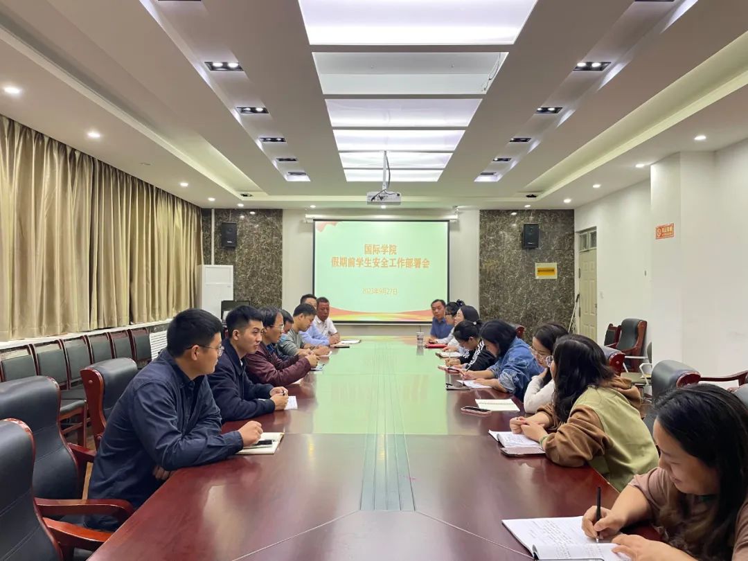为提高全院学生的安全意识,进一步做好“双节”期间学生管理工作,9月27日下午,9428cn太阳集团古天乐于教学楼203召开假期前学生安全工作部署会,9428cn太阳集团古天乐分党委书记刘景涛、副书记郭建伟、行政办主任罗红磊、团委书记郑文平、医务部副主任赵江涛和全体辅导员参加会议。会议由罗红磊主持。