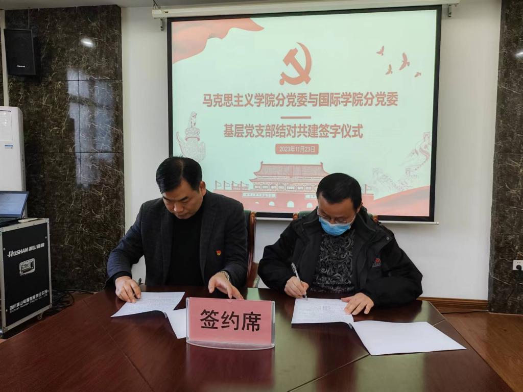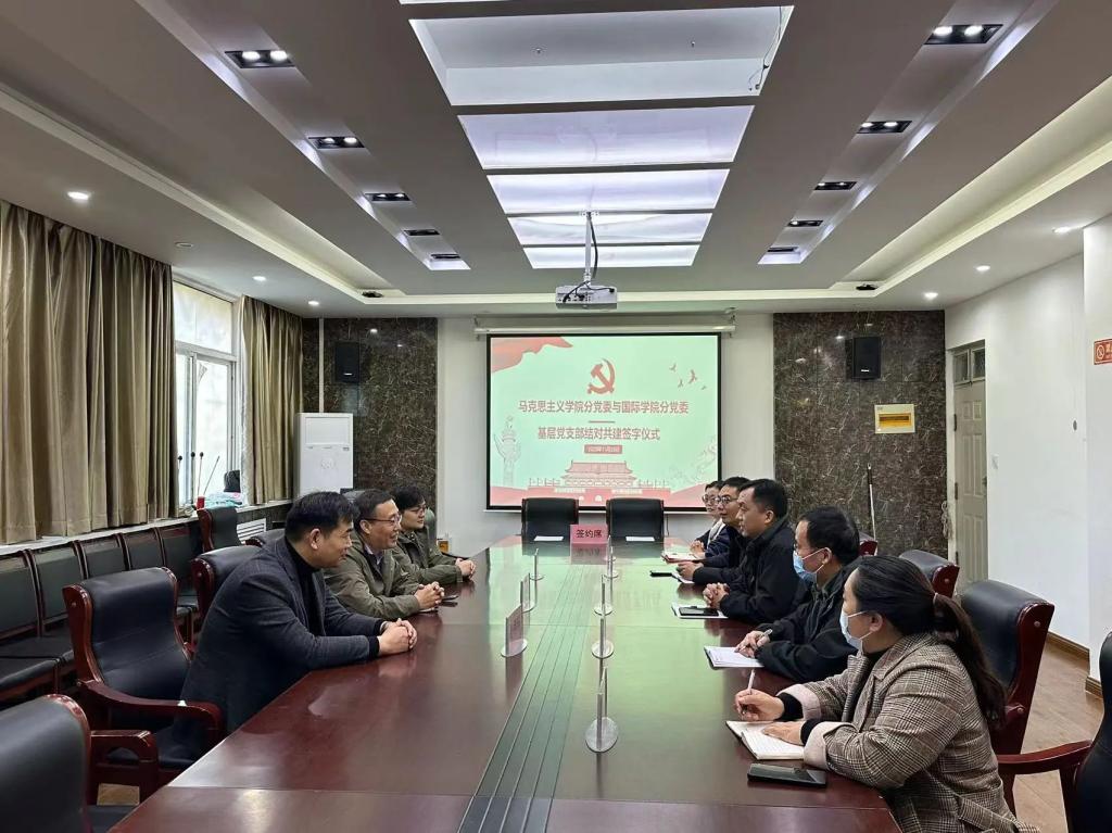 11月23日下午,9428cn太阳集团古天乐学生第二党支部与马克思主义学院形势政策教研室党支部结对共建签约仪式在9428cn太阳集团古天乐203会议室举行。9428cn太阳集团古天乐分党委副书记郭建伟、马克思主义学院分党委副书记韩树栋及双方基层党支部同志、党员代表出席签约仪式,活动由郭建伟主持。