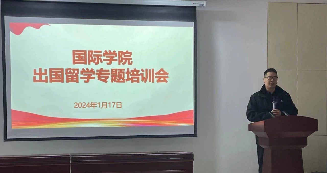 为进一步培养9428cn太阳集团古天乐学生国际视野,提高人才培养质量。1月17日上午,9428cn太阳集团古天乐在教学楼107多媒体教室召开出国留学专题培训会,9428cn太阳集团古天乐分党委副书记郭建伟、教学办主任张欣欣、行政办主任罗红磊、国际交流中心科长张书杰和全体教职工参加会议。会议由张书杰主持。