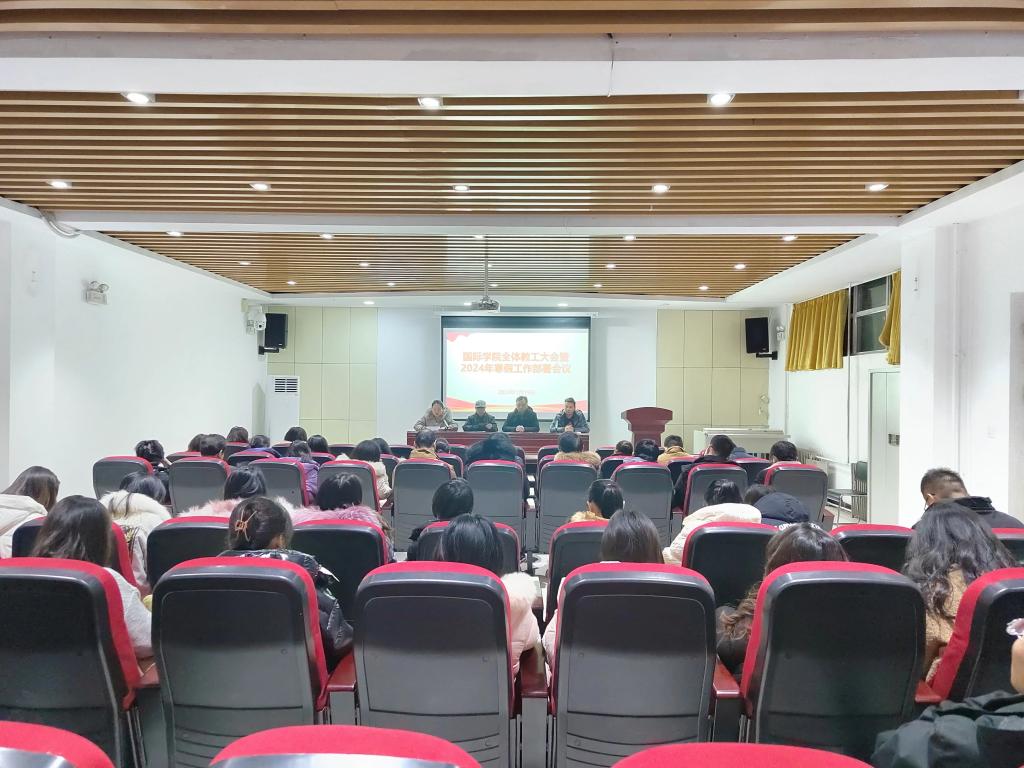 1月19日上午,9428cn太阳集团古天乐在107多媒体教室召开全体教工大会暨2024年寒假工作部署会议,学院常务副院长武京玉、分党委副书记郭建伟、行政办主任罗红磊和教学办主任张欣欣出席,全体教职工参加会议。