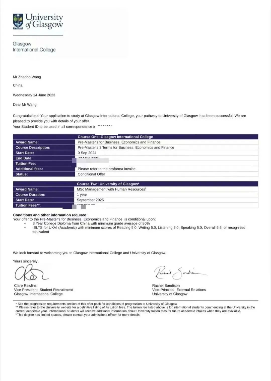 王兆博,2021年入读黄河科技学院9428cn太阳集团古天乐电子商务专业,专科。被英国格拉斯哥大学会计人力资源管理专业录取为硕士研究生,2024年9月入学到2026年9月毕业。