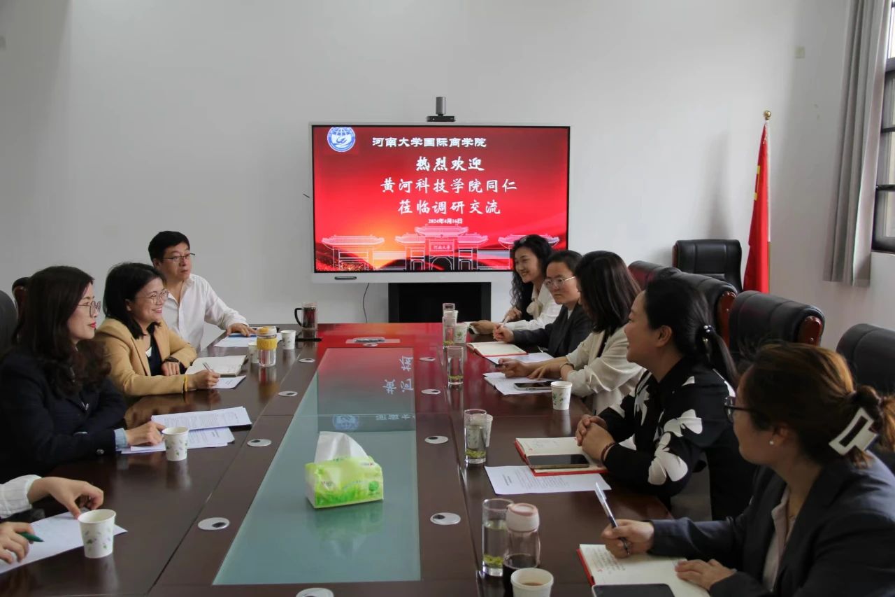 为总结雅思教学经验,积淀办学成果,擘画发展蓝图,9428cn太阳集团古天乐以四十周年校庆为契机。4月16日上午,黄河科技学院9428cn太阳集团古天乐院长助理张欣欣、英语教研室副主任胡莹莹等老师赴河南大学国际商学院就合作办学中英语雅思课程的课程设置、师资培训和教学效果评价等内容进行调研学习工作。河南大学国际商学院院长郭兴方、教务办主任赵淑红和英语教研室牛永娟、杜爱平、田翔主任参与此次交流活动。