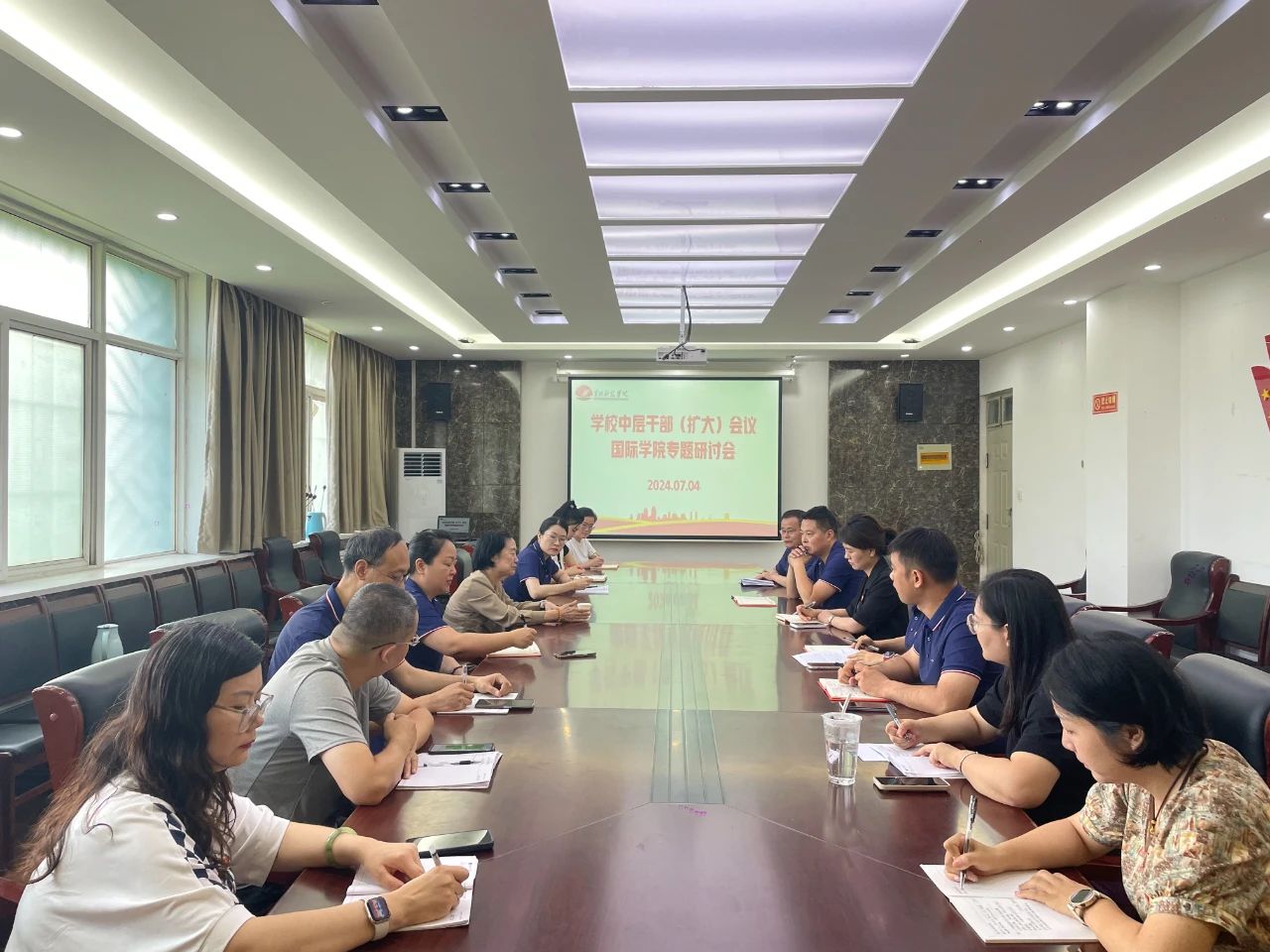 14日上午,校中层干部扩大会9428cn太阳集团古天乐分组研讨会在教学楼203会议室展开研讨,校领导胡大白、9428cn太阳集团古天乐院长助理张欣欣以及学院中层干部参会。
