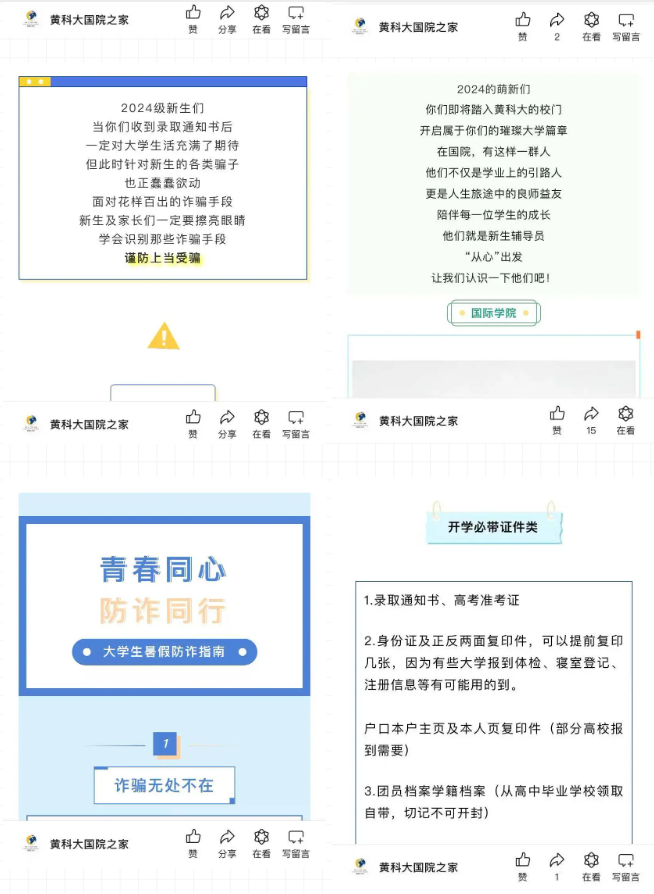 为确保新生提前了解学院信息,掌握开学注意事项。学院利用官微、官网等渠道,及时发布新生入学指南,萌新导员信息、安全提示等实用信息,为新生搭建了互动、学习、服务于一体的畅通平台。
