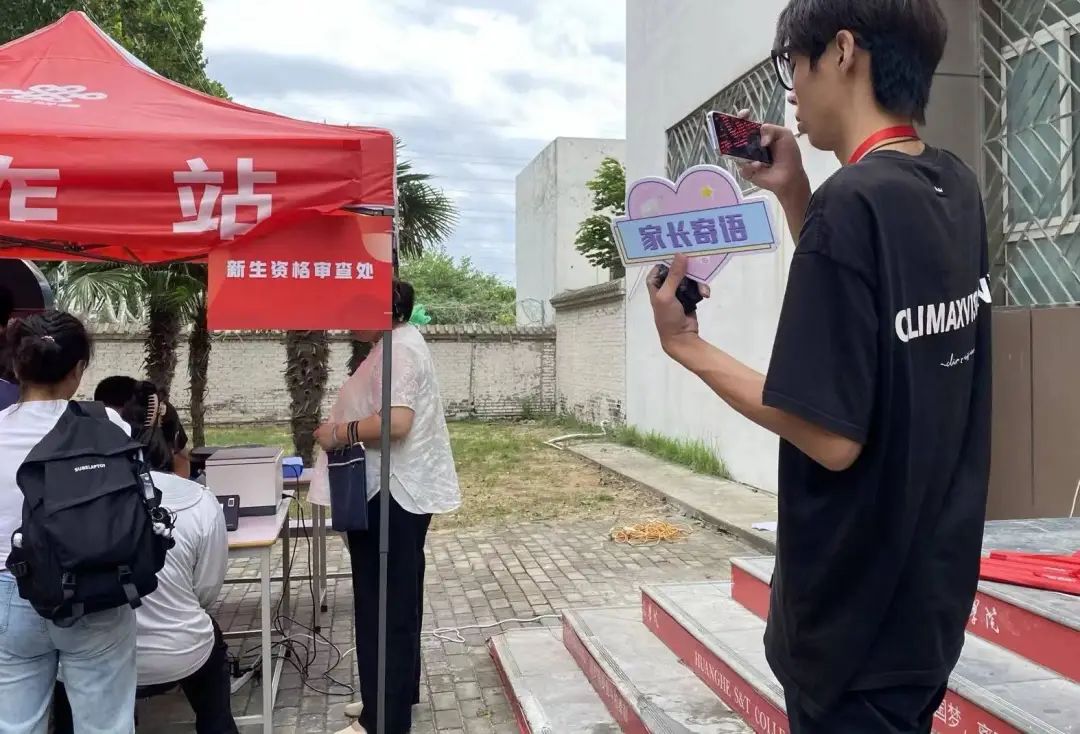 在现场,还有学院的新闻工作者为家长和学生拍照和录制视频,一帧帧,一幕幕,录下了父母对孩子的期望,录下新生学子对大学的憧憬和希望。