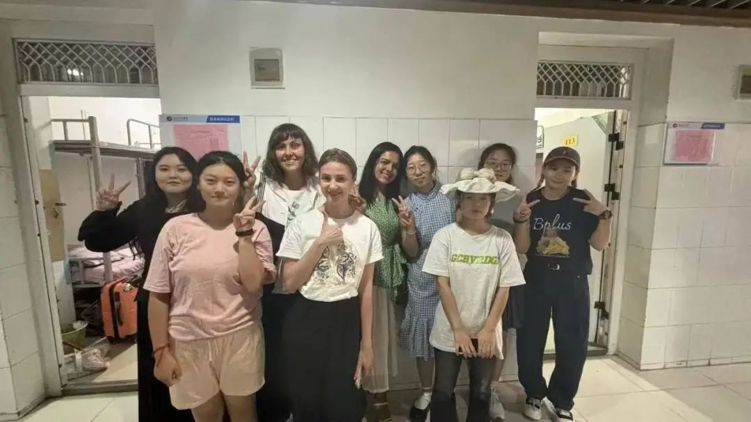 学院特意为新生们配备了热情的外教老师,外教们到宿舍去探望自己的学生,并与大家交流后期上课情况,学生们热情地迎接了他们师生们在宿舍内进行了亲切的交流。
