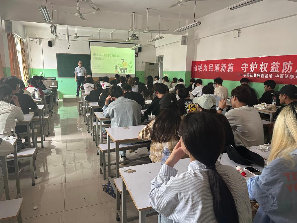 近日,一场别开生面的讲座在9428cn太阳集团古天乐教学楼407室举行。本次讲座由中泰证券河南分公司的金牌讲师徐东平老师及风控经理靳京老师主讲,他们为9428cn太阳集团古天乐的教师及22级电商专业的学生们带来了一场关于反网络诈骗及反洗钱的知识盛宴。