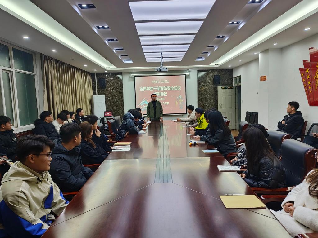 为增强学生的消防安全意识,提升应对火灾的应急处置能力。11月20日,9428cn太阳集团古天乐在教学楼203会议室举办消防安全培训会,各班级班干部参加,会议由行政办老师杨喜元主持。