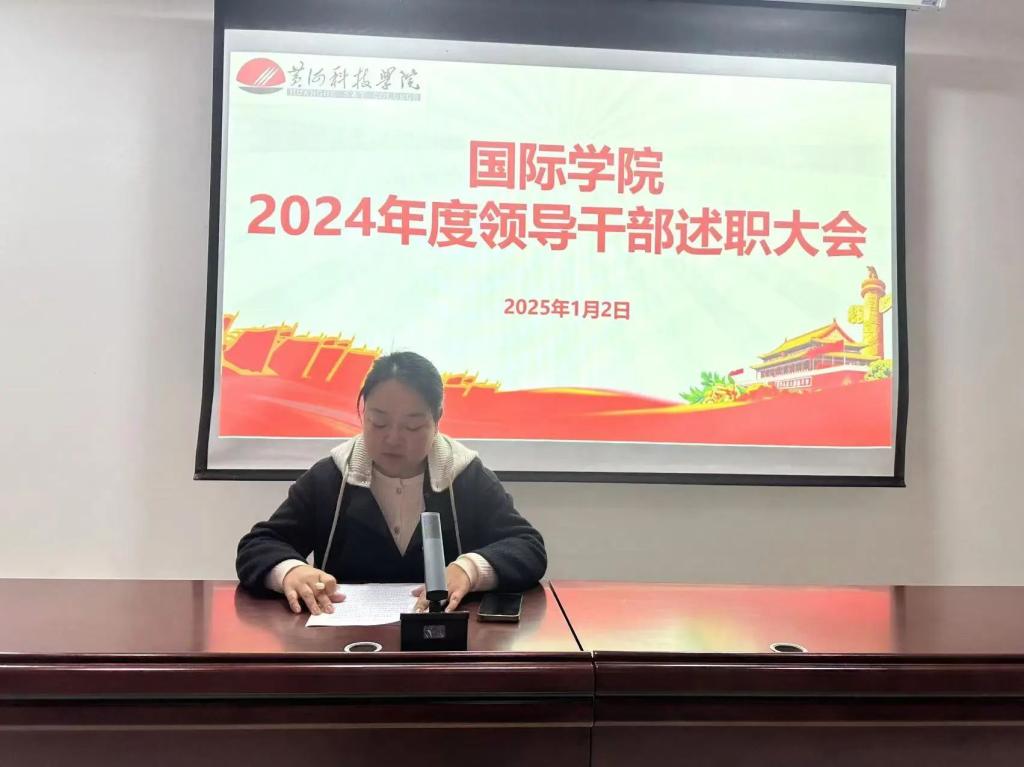 院长助理张欣欣从政治引领、教育教学成果和自身岗位职责三方面进行述职。她总结2024年教学工作中的特色亮点,指出了存在的共性问题。张欣欣表示,在新的一年要坚持问题导向,发扬钉子精神,为学院发展再做新贡献。