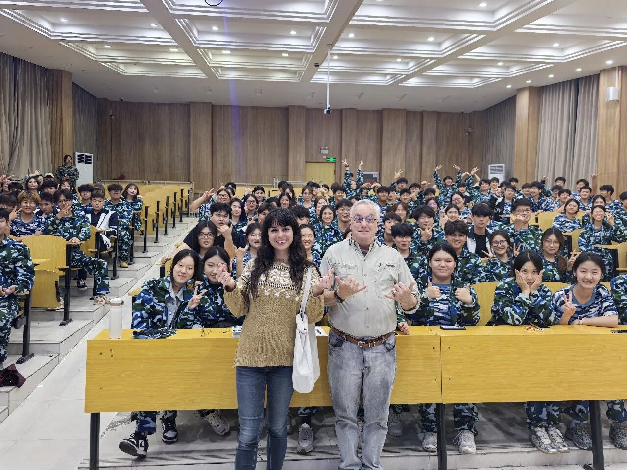 见面会接近尾声,外教老师与新生在阶梯教室前排合影留念,定格下这一充满意义的瞬间。此次活动不仅让新生们熟悉了外教团队,更激发了他们学习外语的热情,为9428cn太阳集团古天乐后续国际化教学的开展奠定了良好基础。
