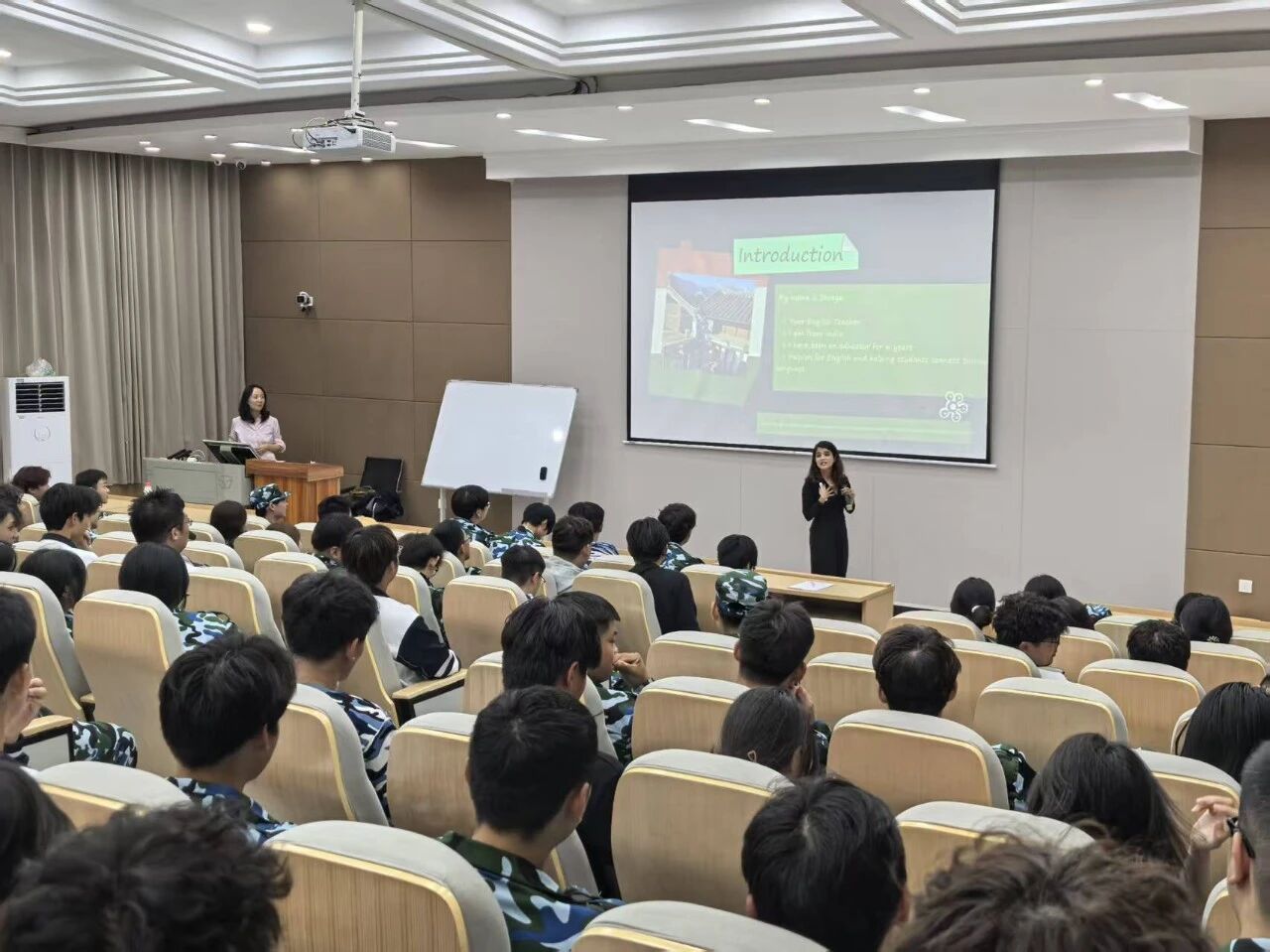 见面会伊始,在同学们热烈的掌声中,外教们依次上台自我介绍,详细介绍了各自负责的学科专业领域与学院整体教学规划。分享环节中,外教们结合自身经历,讲述了丰富的国际交流故事,鼓励新生积极参与各类国际学术活动与实践项目,主动拓宽国际视野。同时,他们还强调,希望同学们多投身课程教研讨论与学生实践活动,在实践中提升综合能力。