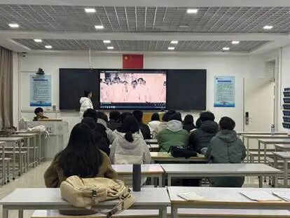 主持人秦祎敏以“沉浸式红色教育”开篇,工作人员带领学子回顾“一二·九”运动历史背景,重温80余年前青年学子的热血岁月。随后集体观看《一二·九运动纪实》《我的1919》等红色影片,并选取国际反法西斯战争影视片段,通过“本土历史+国际视野”的内容组合,让不同国度的爱国故事碰撞,助力学子体会爱国精神“不分国界、跨越时空”的价值。
