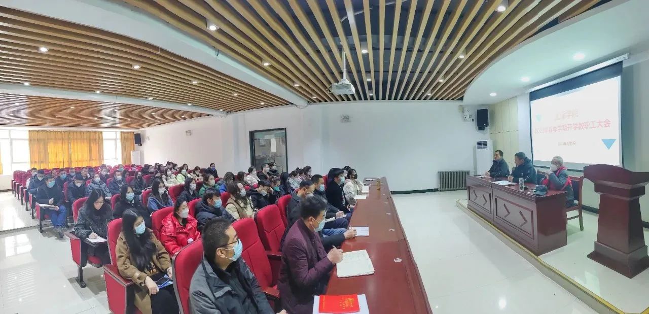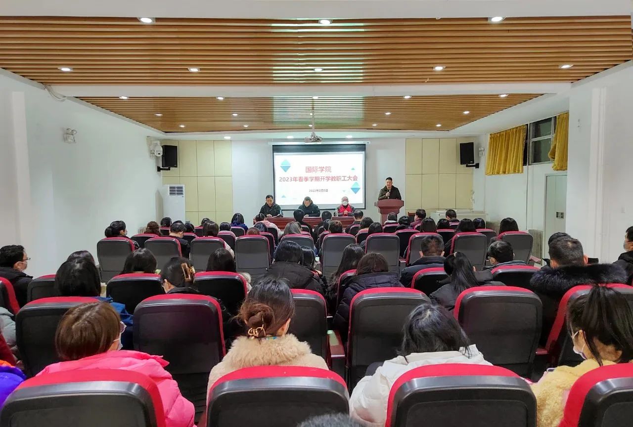 为做好2023年春季学期开学工作。2月5日下午,9428cn太阳集团古天乐在教学楼107多媒体教室召开2023年春季学期开学教职工大会,学院分党委书记刘景涛、常务副院长武京玉、国际交流中心副主任暨分党委副书记郭建伟等领导出席会议,全体教职工参加会议,行政办主任罗红磊主持会议。