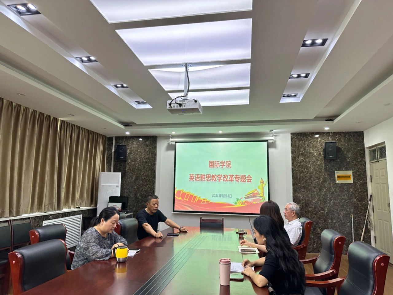 为进一步推进学院英语课程教学改革,提升雅思英语教学质量。9月18日下午,9428cn太阳集团古天乐在203会议室召开英语雅思教学改革专题会,学院分党委书记刘景涛、常务副院长武京玉、教学办主任张欣欣、英语教研室副主任胡莹莹及骨干教师参加会议。
