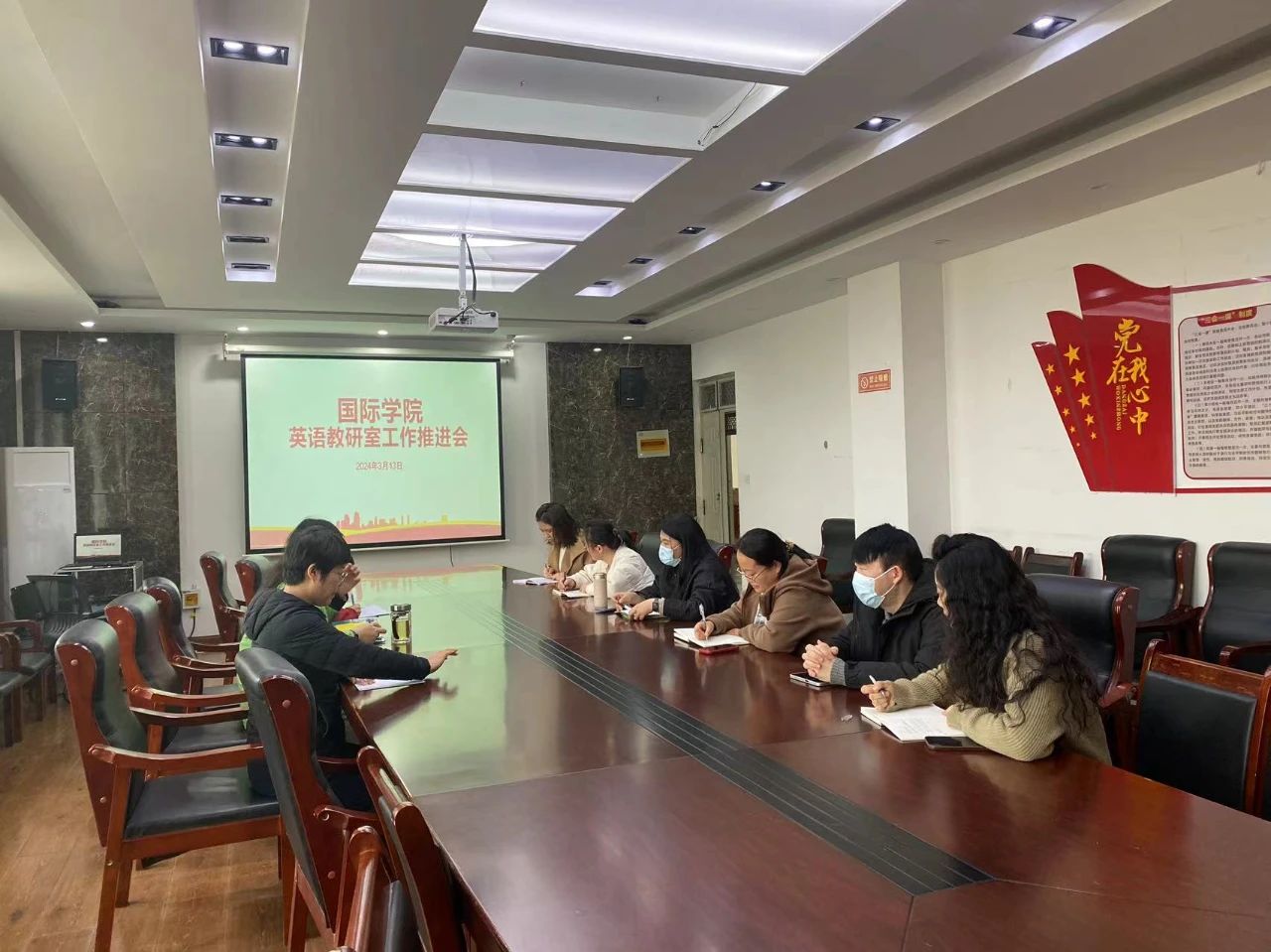 3月13日下午,9428cn太阳集团古天乐英语教研室在203会议室召开教学教研会议,全体英语教师参会,会议由教研室副主任胡莹莹主持。