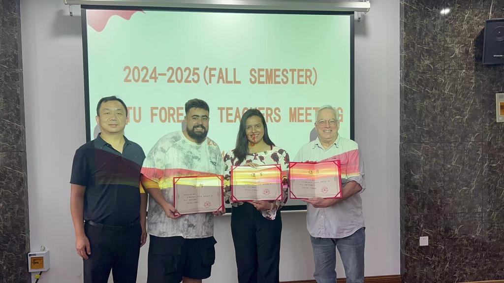 会上,郭建伟发表讲话,首先向新学期返岗的教师们送上亲切问候,对新入职的五名新教师表示热烈欢迎。郭建伟回顾了学校国际合作交流事务的蓬勃发展,肯定了外籍教师在专业教学和中外文化交流方面的积极贡献,向大家介绍了新学期教学工作的重点,鼓励全体外籍教师在新的学期中继续携手并进,为学校的发展建设不断努力。