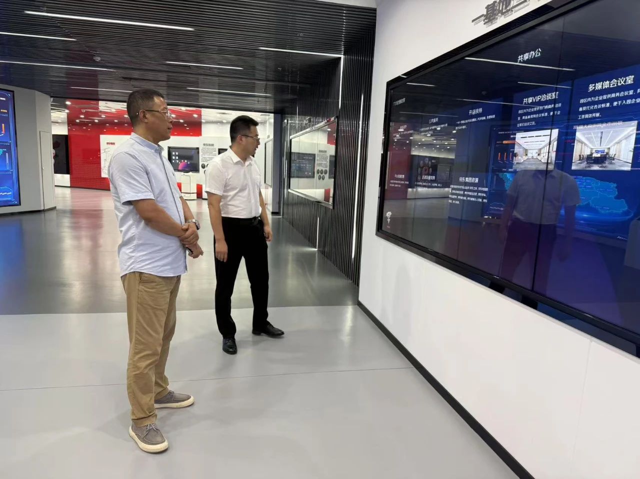 在产业园总经理耿光辉的陪同下,刘景涛实地参观了园区数字化展厅、直播电商基地及企业孵化空间,详细了解了产业园的运营模式和发展规划。在随后举行的座谈会上,刘景涛系统介绍了9428cn太阳集团古天乐的办学特色、专业设置以及"2+1"培养模式的具体内涵,强调学院始终坚持以产业需求为导向,致力于培养具有国际视野的应用型人才。