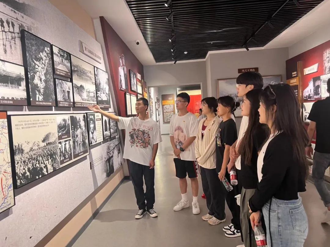 一寸山河一寸血,一抔热土一抔魂。在这座革命的山上,在这个作为鄂豫皖革命根据地的中心,10万多人的新县,就有5.5万人为了革命的胜利奉献出了宝贵的生命的革命老区里,探寻团成员们行进的每一步足迹都像是在叩响历史的回音。期间,解说员一路上依托丰富的红色资源,为队员们深入浅出的讲解革命事迹,红色思想,将思政课堂融入实践足迹,不断引导同学们学习历史,思考当下和未来。