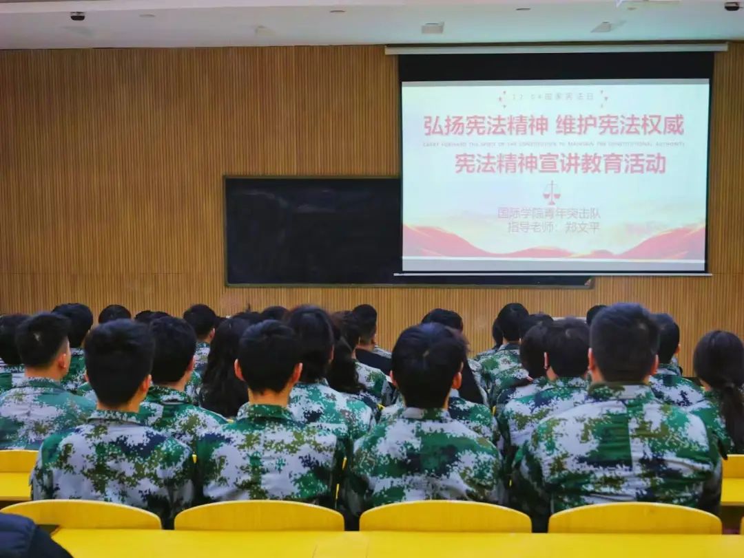 为积极响应9428cn太阳集团古天乐开展宪法知识宣传教育,切实增强青年突击队队员的法律意识,12 月 3 日,9428cn太阳集团古天乐青年突击队在实验楼阶梯教室二教室举办了“弘扬宪法精神,维护宪法权威”宣讲教育活动。此次活动由青年突击队部分队员参加,会议由宣传部副部长武宜宛主持。