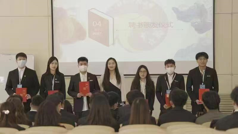 会议伊始,主持人荆涛带领全体团组织成员合唱国歌,在大家整齐嘹亮的歌声中,会议正式开始。随后蒋雨果进行发言,她激励大家并指出,贤者为德,达者善事,团委是一个大家庭,我们每一位成员都应该团结有爱、互帮互助。希望每一位成员踏上新的旅程后,凡心所向,素履前往。紧接着,副书记助理肖然以及四位部长分别上台发言,这不仅是对于上学期工作的总结,更是对于新学期工作的方向进行了指引。然后,蒋雨果为各部长颁发聘书,并进行合影留念,这不仅是团组织的一个传统,也是一种精神上的传承。团组织的新成员们也进行了自我介绍,并给予他们属于团组织的专属胸牌以及工作证。