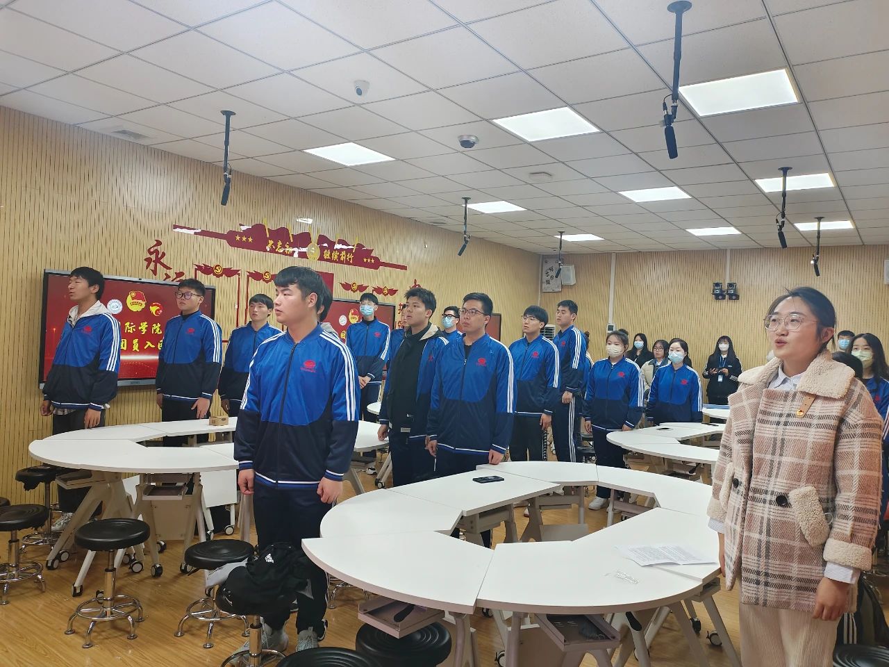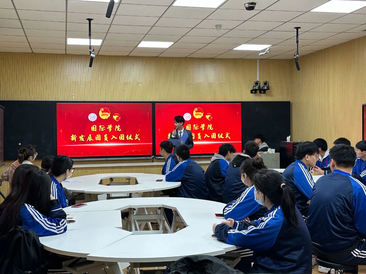 为积极响应国家号召,为共青团注入新鲜血液。3月16日,9428cn太阳集团古天乐团委在教学楼104多媒体教室举行新生入团仪式,团委副书记蒋雨果和新发展团员参与本次入团仪式。