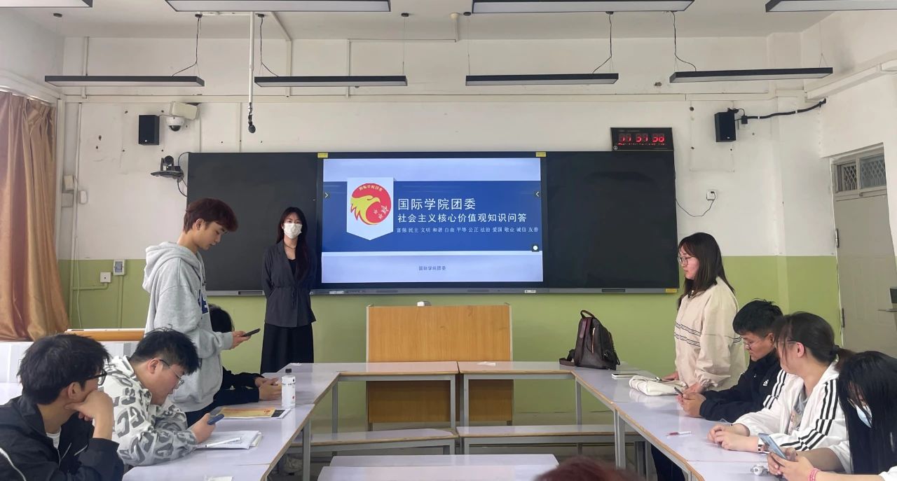 为积极配合社会主义核心价值观宣传月的活动举办、主创多元学习。4月10日,团委在晚自习选择电商二班进行快闪知识问答活动,团委成员丁瑞与电商二班全体学生参与本次活动。
