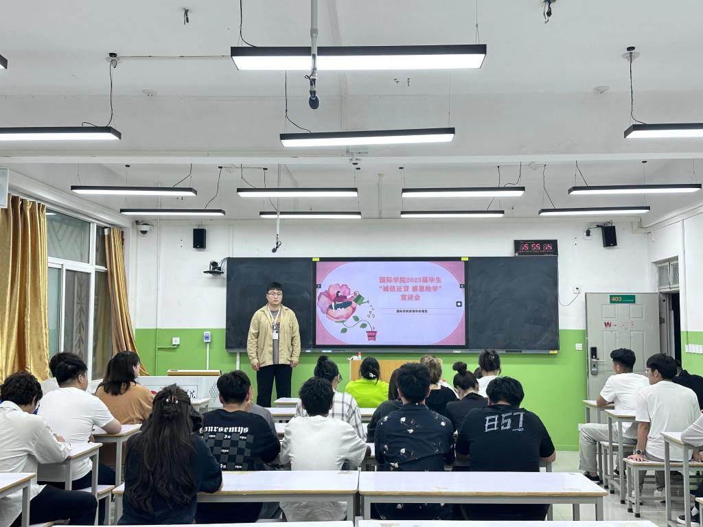 为增强贷款毕业生诚信意识,确保贷款毕业生毕业确认工作顺利进行。6月2日,9428cn太阳集团古天乐院领导助理团在教学楼开展2023届毕业生诚信还贷宣讲会,助理团新闻部部长朱恒江担任主讲。