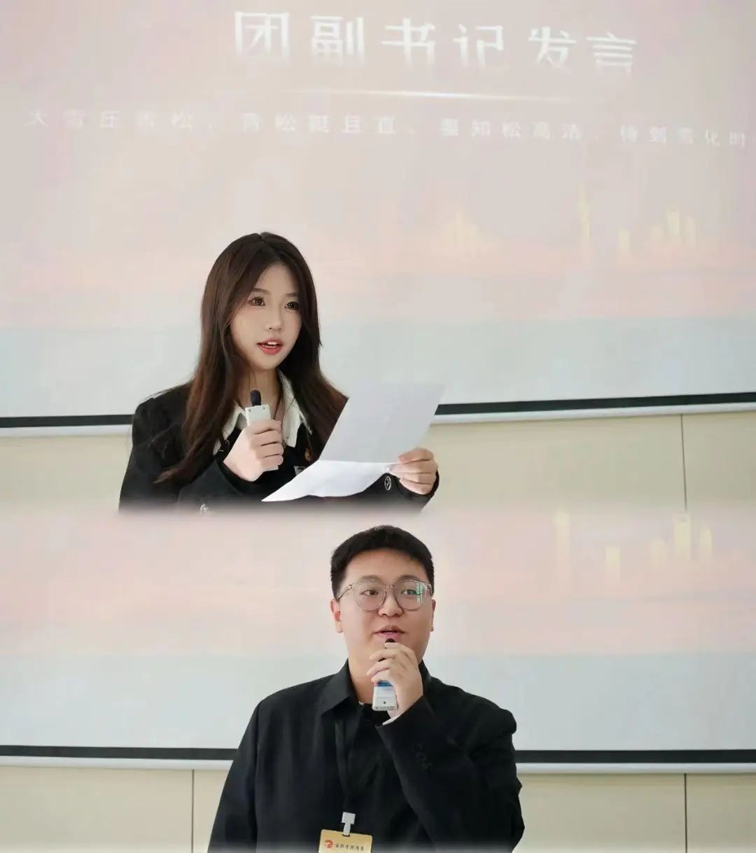 会议伊始,黄文豪和张涵烁带领全体团组织成员合唱团歌,在大家整齐嘹亮的歌声中,会议正式开始,由郭恬和张榆琳为各位团干部颁发聘书,并进行合影留念,张榆琳表示这不仅是团组织的一个传统,更是一种精神上的传承,然后,郭恬强调了此次会议的重要性和团委工作的重要性,让每位团干了解规章制度,强调纪律,不犯低级性错误,强调团干明确自己的职责,鼓励所有的部员积极工作,积极向团、向党靠拢。随后,张榆琳、曹恒搏以及各位部长分别上台发言,这不仅是对于上学期工作的总结,更是对于新学期工作的方向进行了指引。最后,团委全体成员合影留念,此次全体大会圆满落下帷幕。