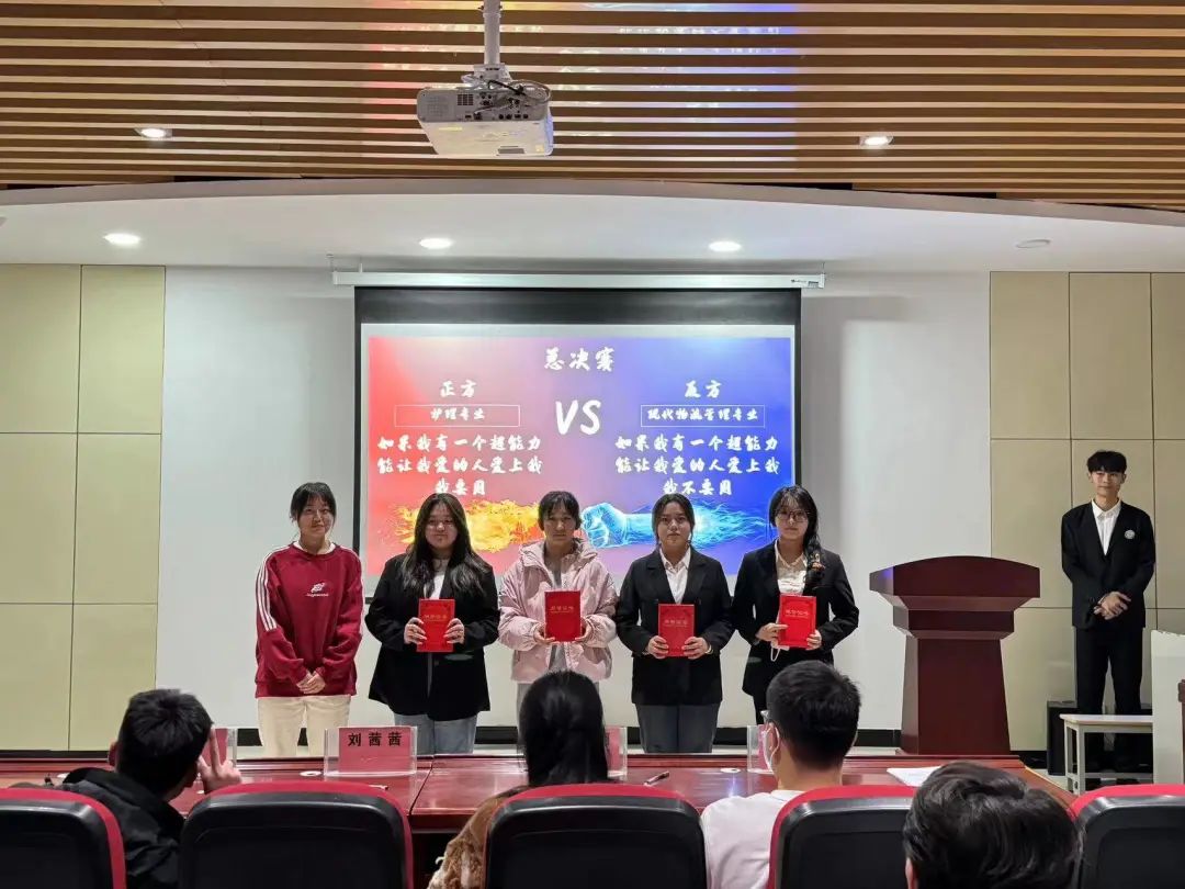 首先,助理团副团长杨暮帆对本次比赛致辞,他指出了大学生参加辩论赛的意义,强调辩论不只是在特定辩题下的辩论,而是针对事件持有不同看法,不同立场的任何讨论形式。紧张激烈的决赛正式开始,决赛的辩题非常符合当下的现实热点——“如果我有一个超能力、能让我爱的人爱上我 我是否要用这个超能力”双方辩手通过数据与案例来展开激烈的辩论,自由辩论环节精彩纷呈,进入白热化阶段。双方辩手认真倾听对方言论,寻找漏洞,巧妙反驳。辩手们旁征博引,妙语连珠,引用众多事例来论证自己的观点,分析证明各自看法。双方辩手表现优异,获得评委与观众的认可。经过评委的评分最终“现代物流管理专业队”获得胜利,同时评委投票产生最佳辩手是现代物流管理专业南茜同学。