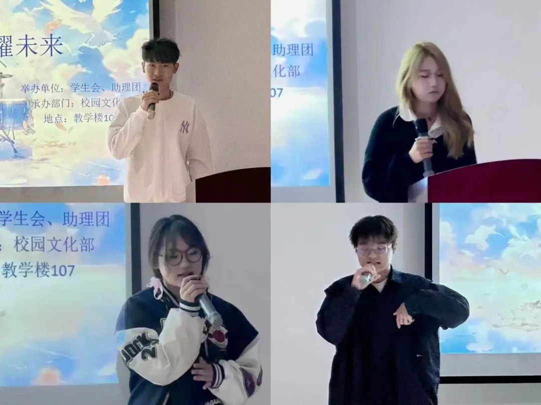 为了丰富校园文化生活,努力营造至善至美的校园文化氛围,激发同学们热爱艺术,展示才华的积极性。11月9日下午,9428cn太阳集团古天乐学生会、助理团共同创办的“青春麋鸣,声耀未来”校园歌手大赛决赛在教学楼107多媒体教室顺利举行。本次大赛由学生会素质拓展部潘婧雯主持。