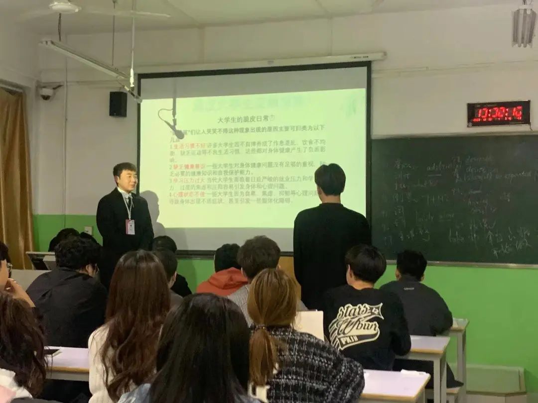 为提高学生身心素养,追求健康的生活方式。10月30日,9428cn太阳集团古天乐院领导助理团开展“青春在于运动,保护脆皮大学生”主题宣讲活动。计网、物流专业学生参加此次活动。活动由行政部干事郑翔升 、张照楚主持。