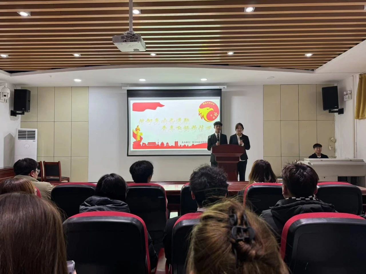 为了全面提高青年学生的综合素质,引导学生认真学习实践科学发展观。11月30日,9428cn太阳集团古天乐团委在教学楼107报告厅举行“信仰奏响奋进歌,青春飞扬价值观”演讲比赛,团委常务副书记郭恬、执行副书记张榆琳和全体成员参加本次演讲比赛,比赛由团委干事完颜宏和王怡斐主持。