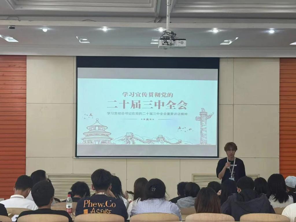 活动伊始,蔡翔宇向大家介绍党的二十届三中全会召开的目的:为深入学习贯彻习近平总书记关于全面深化改革的一系列新思想、新观点、新论断,完整准确全面贯彻新发展理念。明确指导思想是进一步全面深化改革是坚持和完善中国特色社会主义制度、推进国家治理体系和治理能力现代化的必然要求。随后,吕俊澄引导着现场的同学们深入理解党的二十届三中全会的重要性和深远意义。接着,吕俊澄详细为大家解读了会议中提出的各项改革措施,以及这些措施如何与我们的日常生活和工作紧密相连。活动结束后,各班团支书纷纷表示,这次活动不仅让他们对党的二十届三中全会精神有了更深入的理解,也让他们看到了学院对于学生思想引领工作的重视。