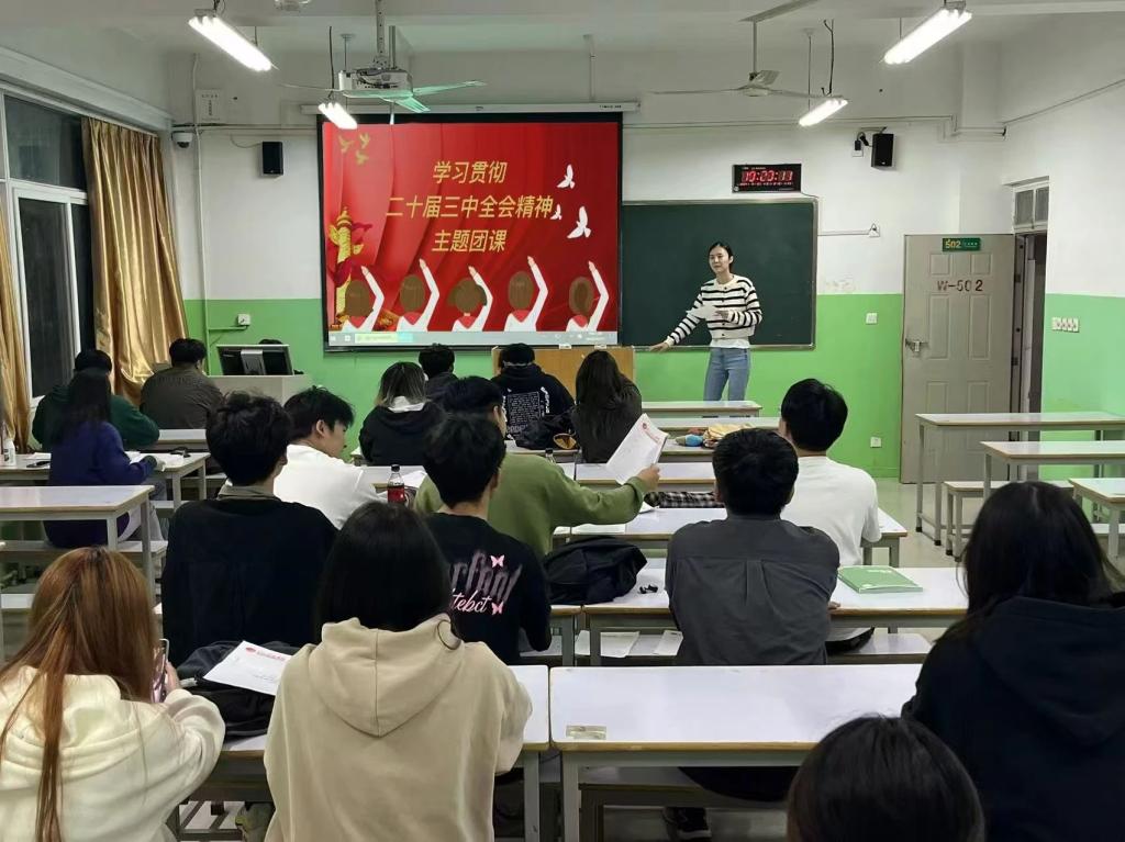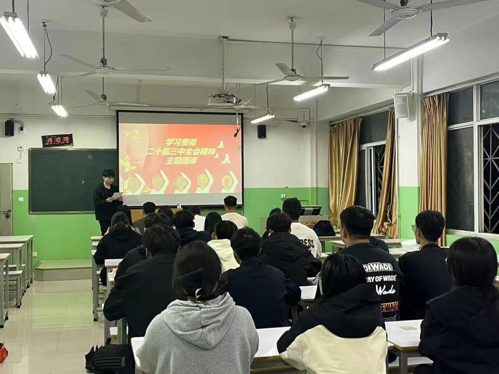 活动伊始,各班级团课紧扣党的二十届三中全会的内容展开,同学们学习党的精神,深刻认识到作为新时代青年,要坚持党的全面领导始终跟党走,紧密团结在党的周围,为党提供强大动力和制度保障,来提高大学生对于党的感悟。随后,各班级团支书也表示,我们要认真组织学习,把学习全会精神作为巩固拓展团员和青年主题教育成果、开展党的创新理论武装工作。同时也强调让各级团组织起到示范带动作用,坚持更高标准、更严要求。通过主题团日活动、以专题研讨等形式,全面系统学、融会贯通学,领会精神实质,把握核心要义。以青春之名,赴时代荣光,这也深深的激励了同学们对于当代青年勇于挑起重担展现担当的意识。最后,同学们表示也将以更饱满的热情进一步加强思想觉悟,提高对于党的崇敬之心,让党的精神实实切切落实在大学生中,将以青春之火,共度国富民强。
