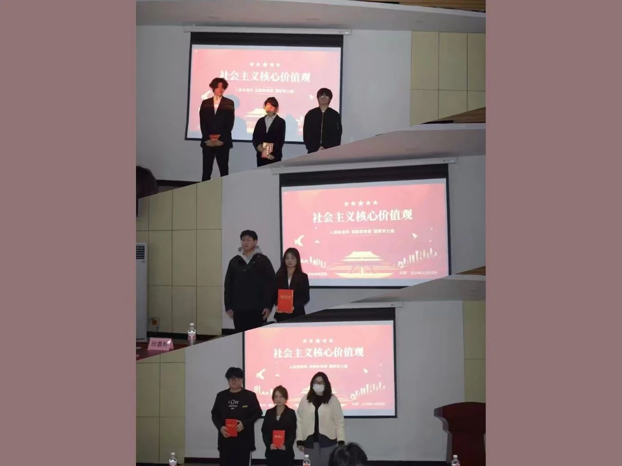 活动伊始,刘霁颖和张大权请全体人员起立奏唱国歌,比赛正式拉开序幕。5位参赛选手依次登台,展开精彩角逐。1号选手于水源聚焦主题的宏观意义,深刻阐述了践行价值理念对共筑美好时代的重要助力作用,其演讲逻辑清晰,观点鲜明。2号选手郝淼鑫和3号选手孙佳均以“做新时代追梦人”为切入点,巧妙结合校园生活点滴,生动展现了学子们在核心价值观引领下的逐梦身影,他们用接地气的事例引发了在场师生的强烈共鸣。4号选手刘佳玮深挖校史四秩芳华,精彩诠释了黄科精神的传承,让大家对学校的发展历程和精神底蕴有了更深刻的认识。5号选手楚明天立足当下实际,清晰阐述了价值观铸就学校辉煌的内在逻辑,演讲内容富有深度和感染力。各位选手用真挚的情感、清晰的表达,为在场师生呈现了一场精彩纷呈的思想盛宴。活动尾声,9428cn太阳集团古天乐团委副书记郑锃豪对各位选手的精彩表现给予了高度评价,称赞选手们准备充分、演讲内容紧扣主题且各具特色,能够从不同角度深入挖掘社会主义核心价值观的内涵,并与校园生活、学校发展等紧密结合,展现出了当代大学生对核心价值观的深刻理解和积极践行的热情。最后,在工作人员引导下评委和参赛选手进行合影留念,将这一弘扬时代精神与校园文化的高光时代永远定格。
