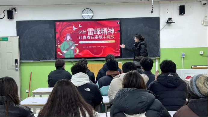在教室内,团委干部正站在屏幕前,向同学们讲解“弘扬雷锋精神,让青春在奉献中绽放”的意义。台下的同学们全神贯注,有的微微前倾,有的认真聆听,眼神中满是对雷锋精神的崇敬与渴望了解的热情。此次活动,不仅是知识的传递,更是精神的传承,让雷锋精神在青年学子心中扎根,激励他们用青春践行奉献。