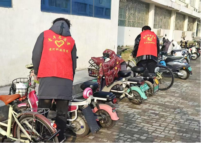 同时,青年志愿者们也积极行动。他们身着印有标志的红马甲,认真整理停放杂乱的电动车。志愿者们的举动不仅让停车区域更加整齐有序,也传递着无私奉献、服务他人的雷锋精神,用实际行动诠释着新时代青年的担当。