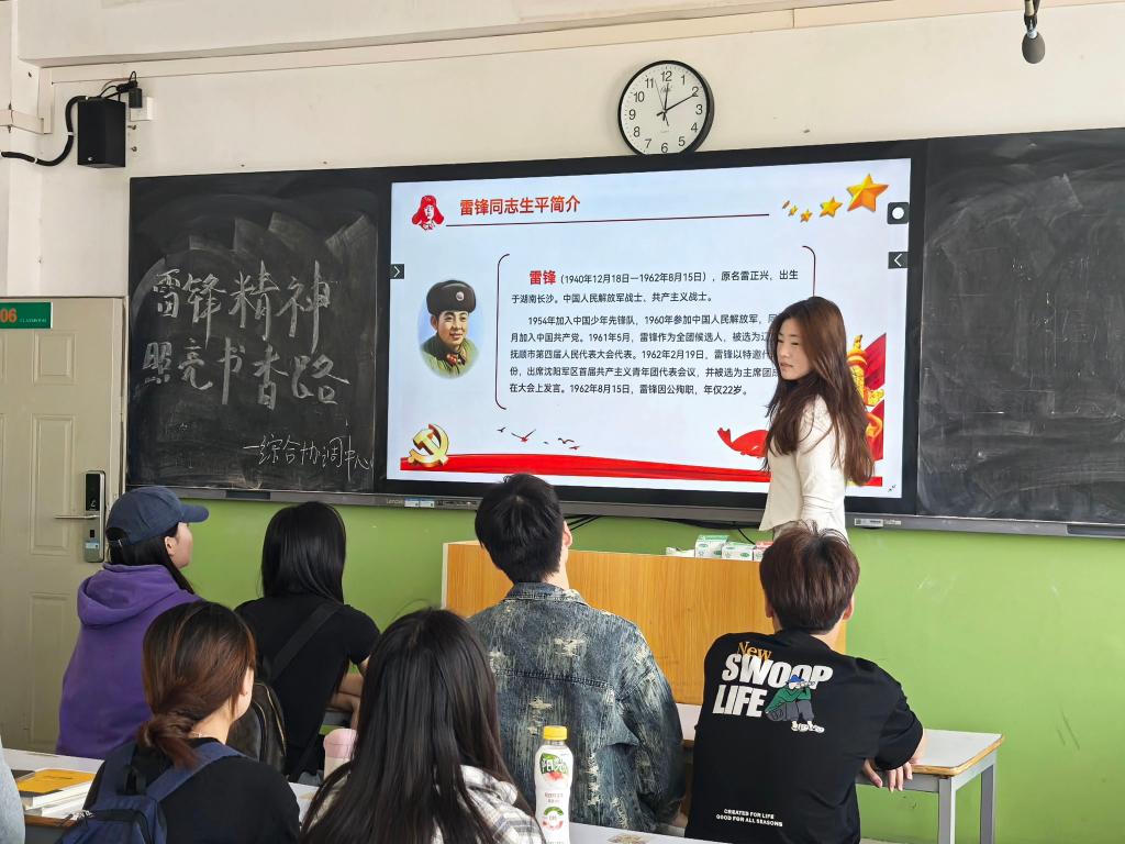活动在热烈而有序的氛围中拉开帷幕。各部门围绕“雷锋精神伴我读”这一核心主题,别出心裁地开展了形式丰富多样的特色活动。团委成员精心准备的雷锋事迹短视频率先登场,一段段珍贵的影像资料,一个个雷锋帮助战友读书识字、关爱他人的感人瞬间,迅速抓住了同学们的目光,将大家带入了那个充满温暖与奉献的时代。